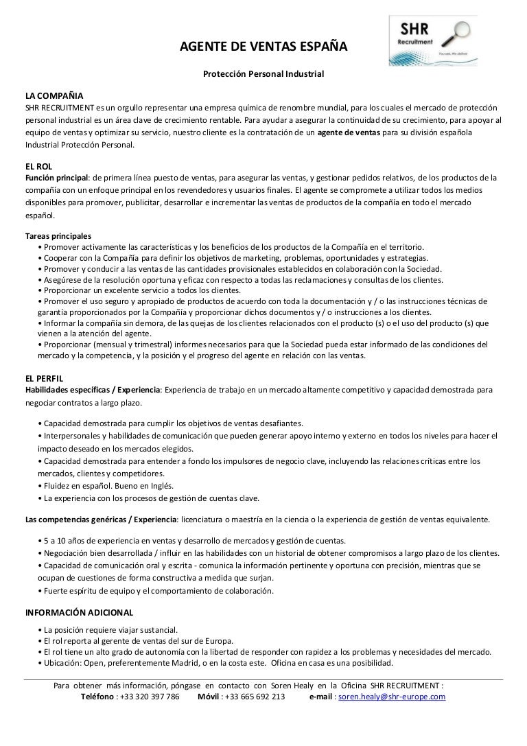 Sales agent spain job description español