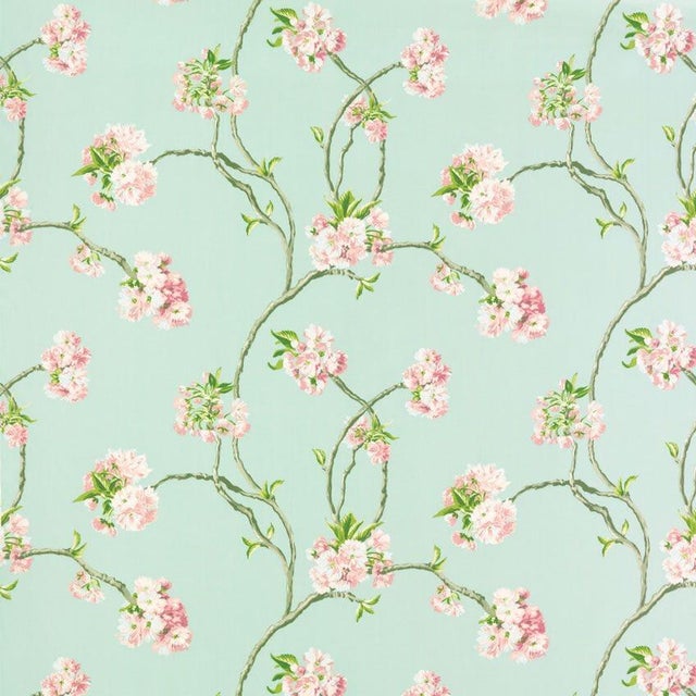 Osborne & Little Duck Egg Blue Orchard Blossom Linen ...