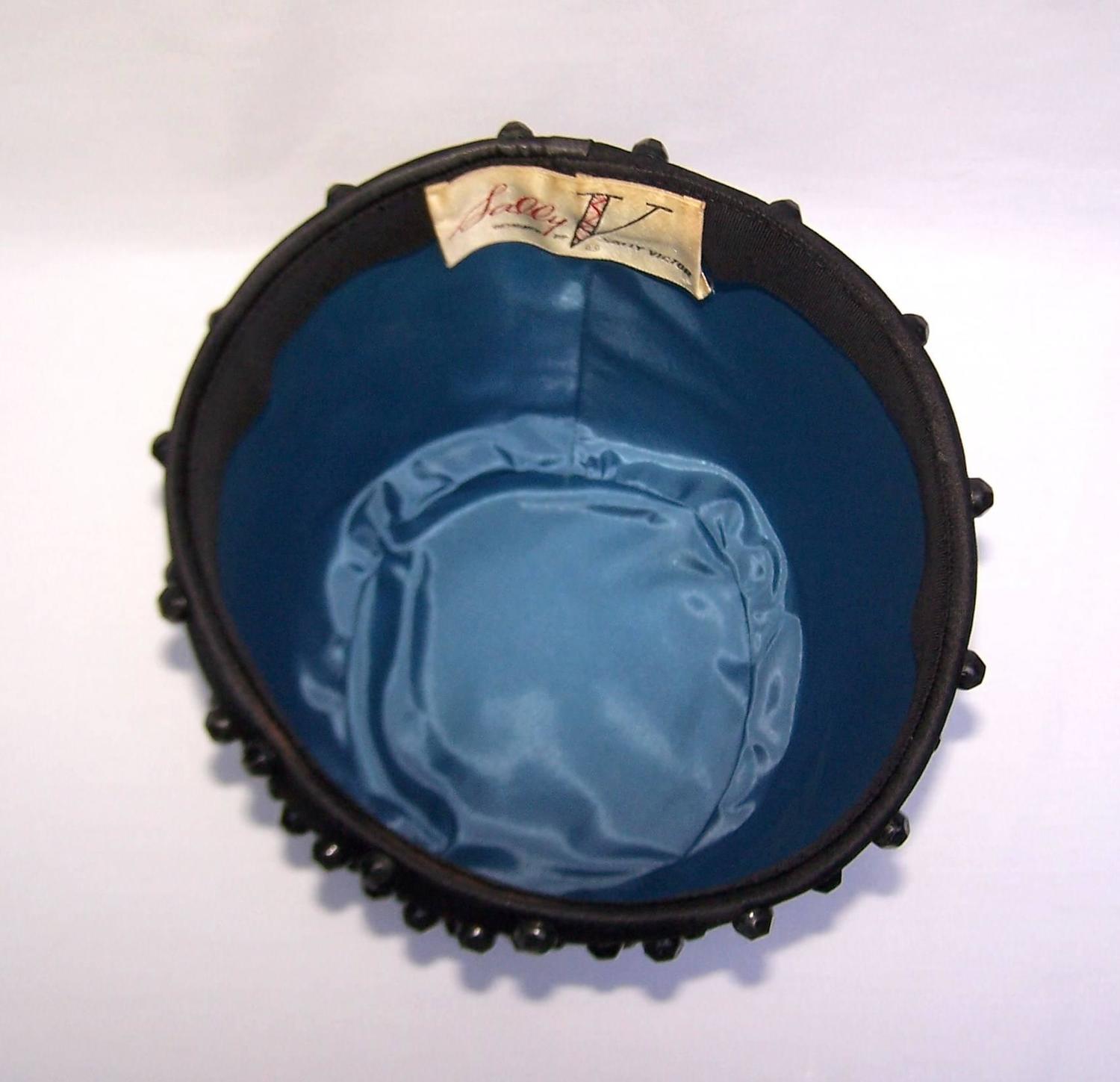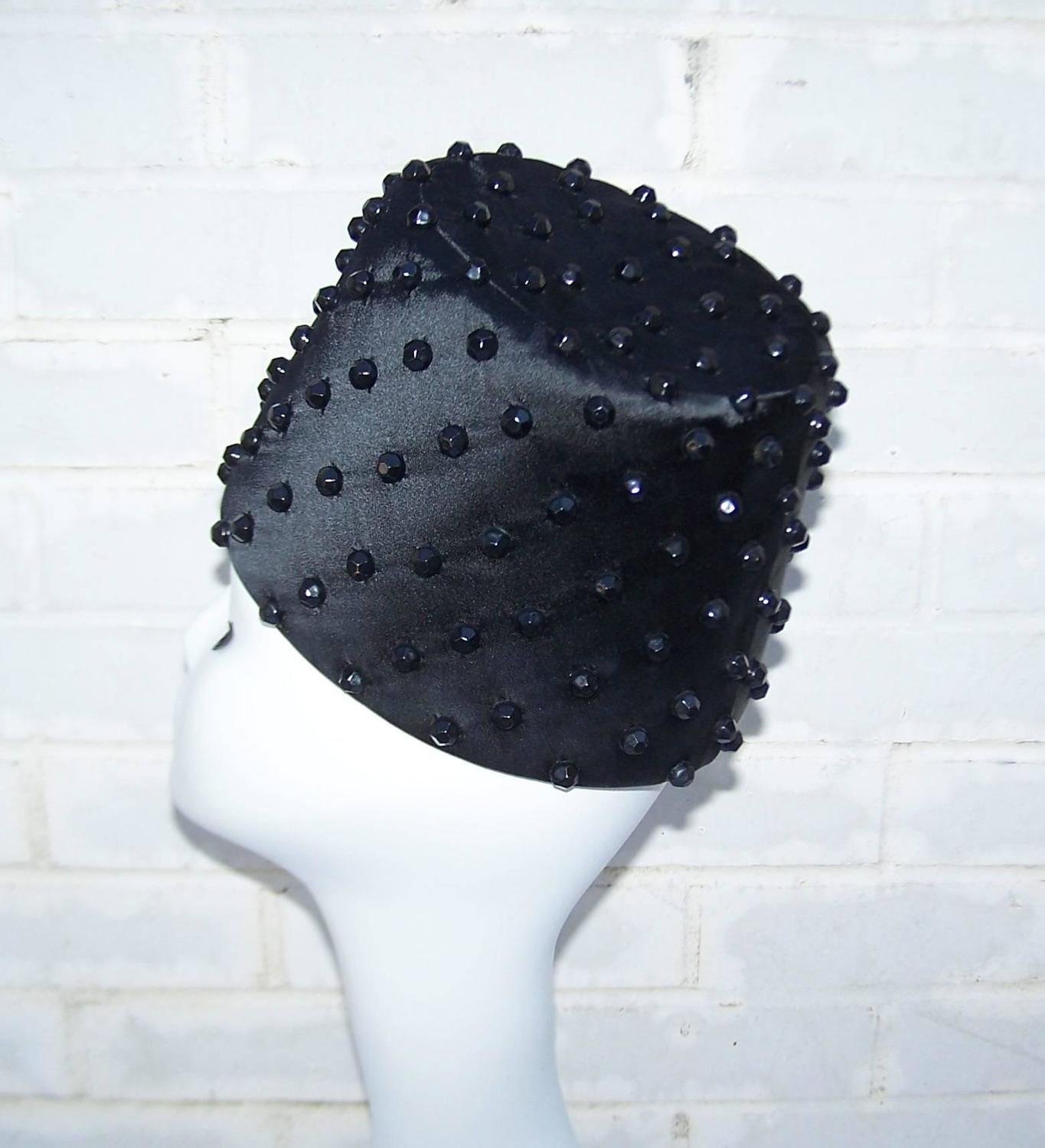 Exotic C.1960 Sally Victor Beaded Black Satin Fez Style ...